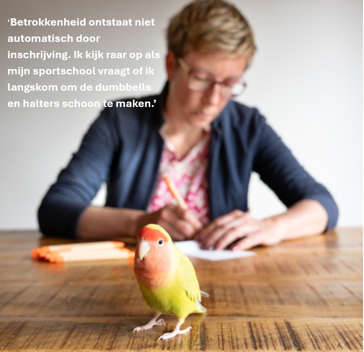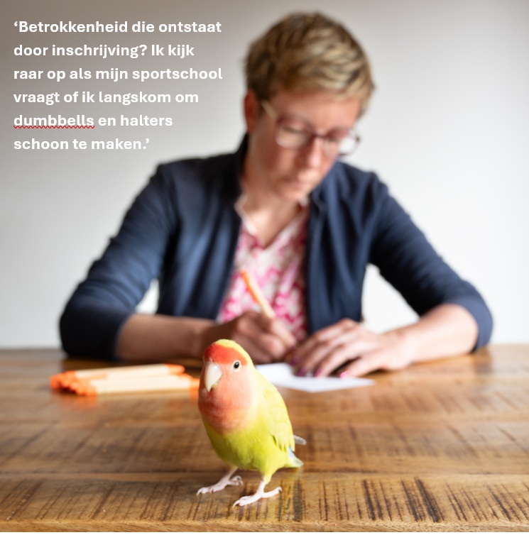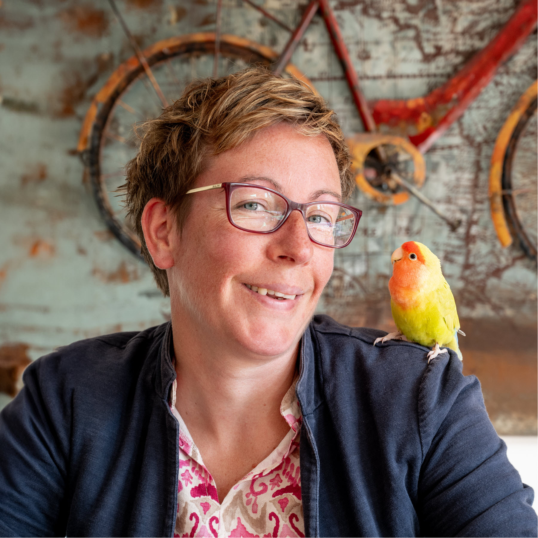 En die vogel? Dat is Fred, mijn co-worker. Luidruchtig, bemoeizuchtig, maar o zo lief.