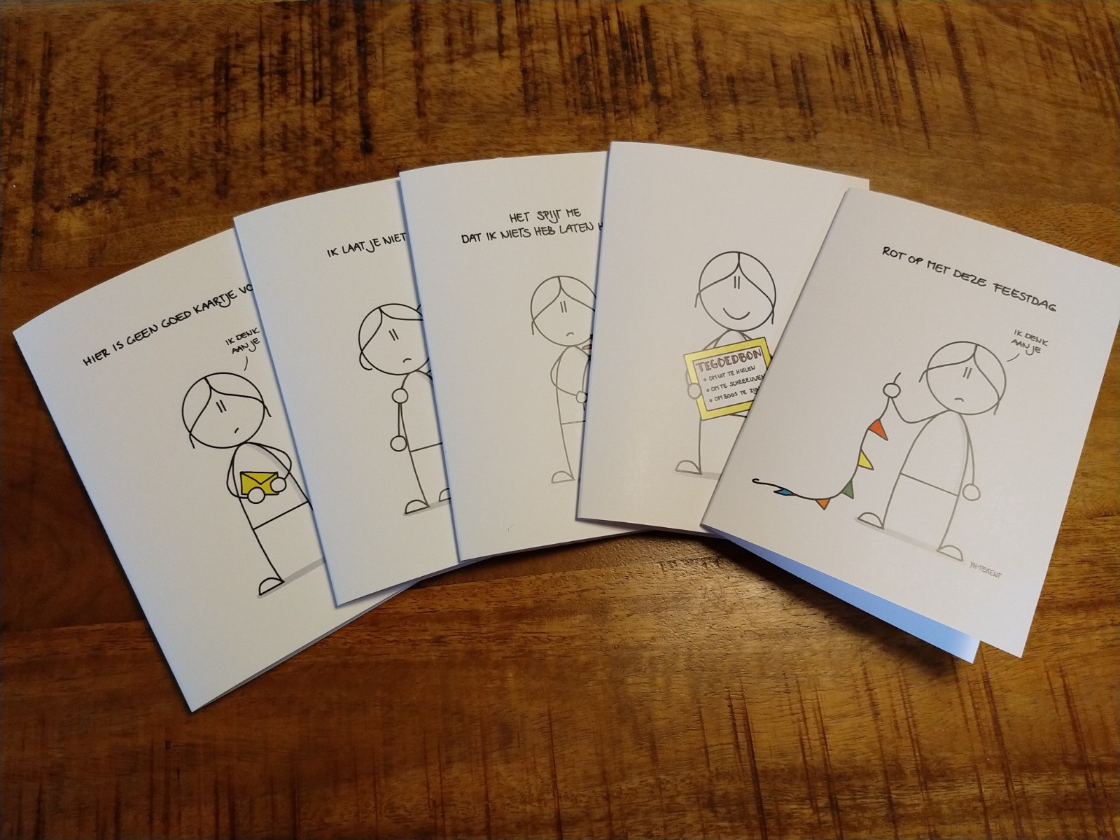 Set van vijf wenskaarten. Te versturen naar dierbaren op lastige momenten en moeilijke dagen.